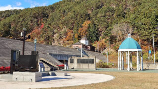 ナガシマスパーランドの目玉、「白鯨」と「スチールドラゴン」が青空に映えて美しいです!本来9:30開園(宿泊者は9:20入場)ですが、本日は10:00開園目指して準備中とのこと。(※開園待ちした身内によると、結局10:30に開園したとのこと。乗れて良かったね♪)