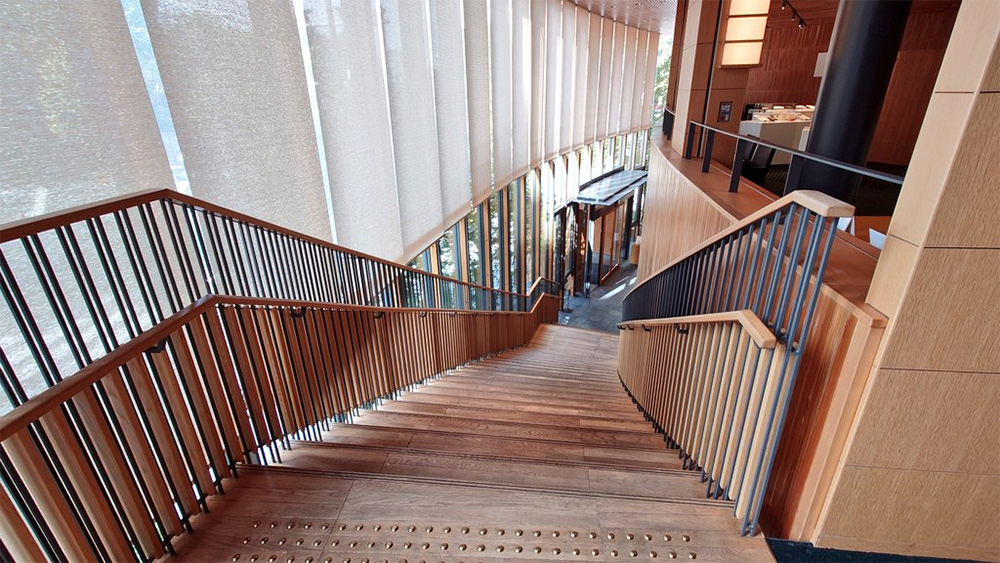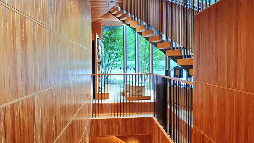 老舗和菓子店「とらや」のとてもモダンな造り、茶寮である3階までの空間がとても素敵に演出されている店舗です。