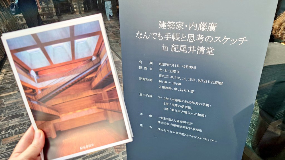 紀尾井清堂の建築家・内藤廣氏の約40年分の手帳を年代別に公開している「建築家・内藤廣~なんでも手帳と思考のスケッチ in 紀尾井清堂」は9月30日(火)まで。開館日が 火・木・土曜日 と、変則なのでご注意ください。また、9月23日は閉館です。開館時間は10:00~16:00、観覧料は無料で事前予約の必要はありません。詳細はリンクから確認してお出かけください。