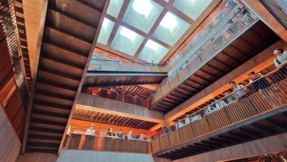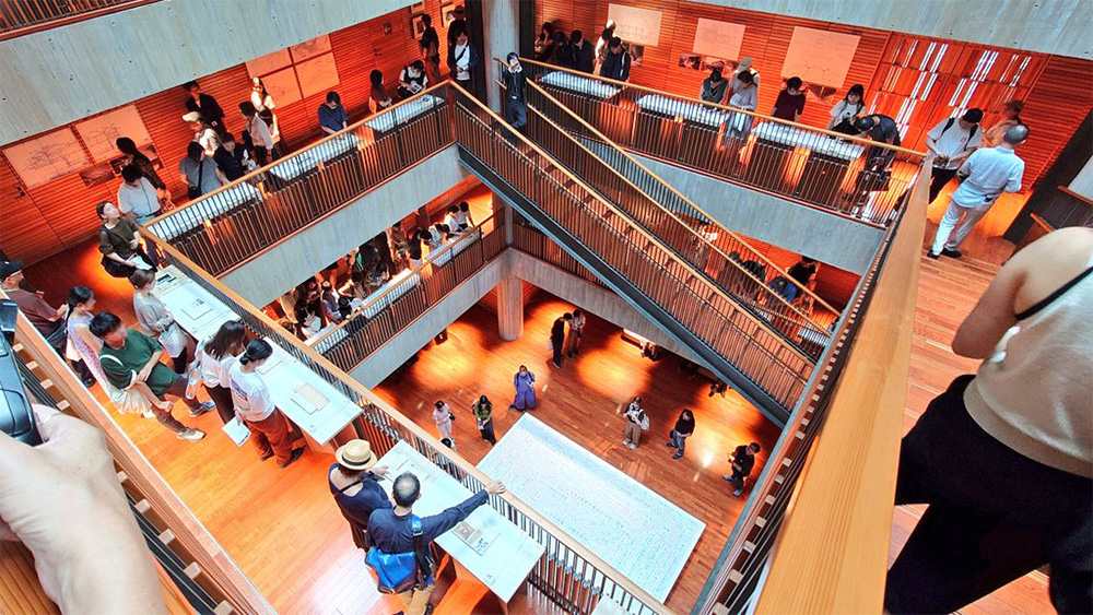 5階のトップライトが照らしているのは、内藤廣氏の手帳から抜粋された言葉のオブジェ。この後、階段で上がりながら言葉の出どころの手帳を見ることができます。