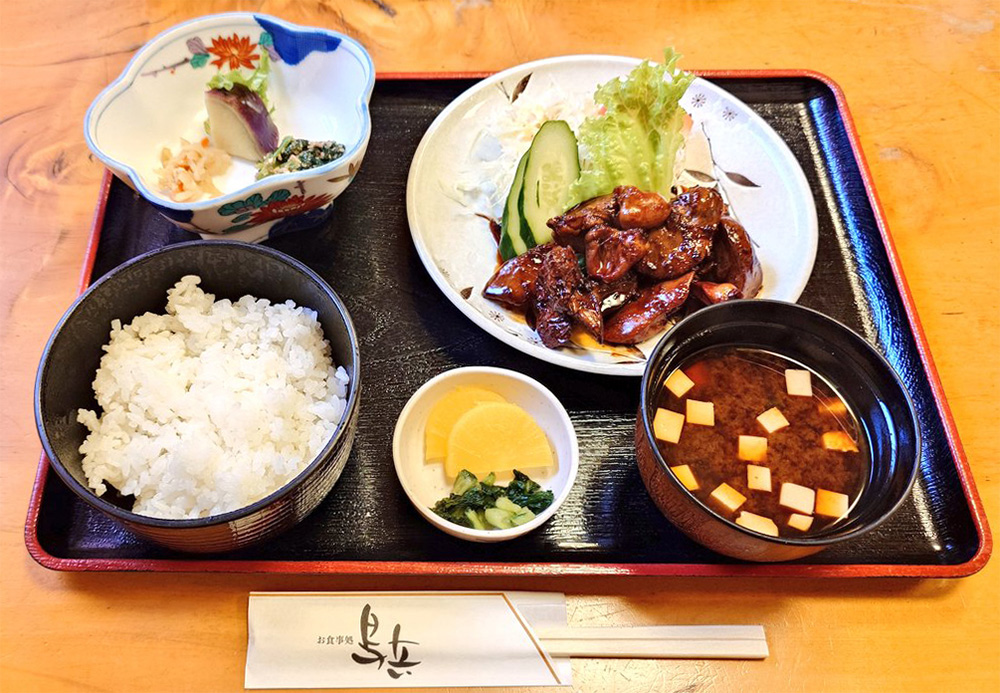 ランチも町の中で。ボランティアガイドさんに地元の恵那鶏を使った「鳥料理が美味しい」と教えていただいた、お店「鳥兵 (とりひょう)」です。空気も水も綺麗な町を歩いてきて、そこで育った鶏をいただく”地続き”な体験。