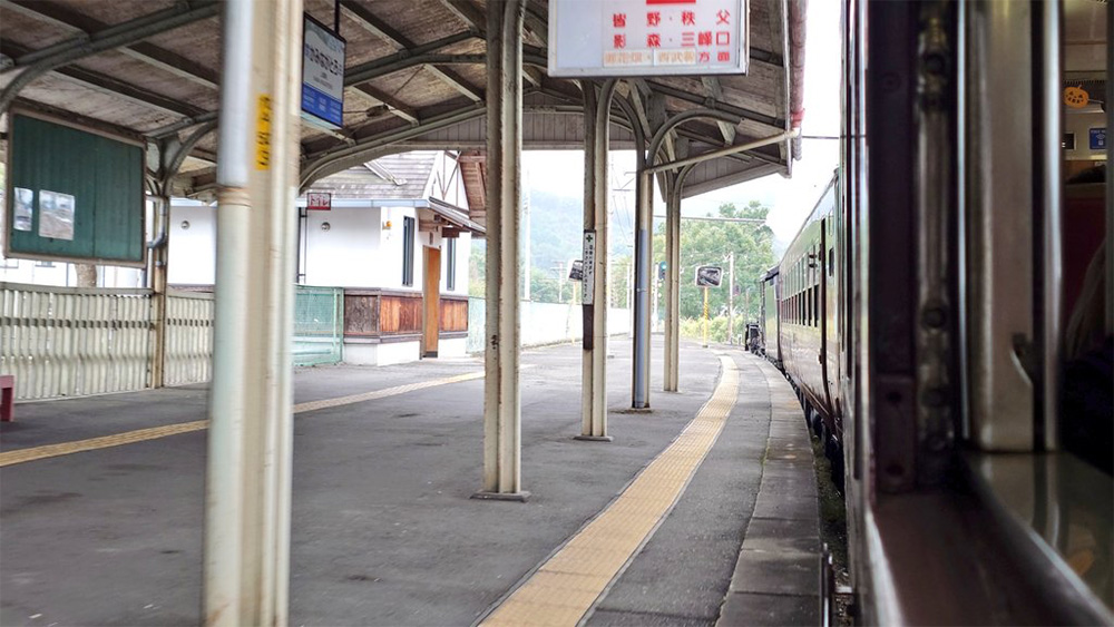 沿線の駅の景色は、昭和の懐かしさがあります。撮影していると、オバケがチラッと映り込んできて可愛い♪