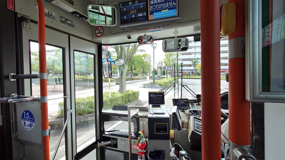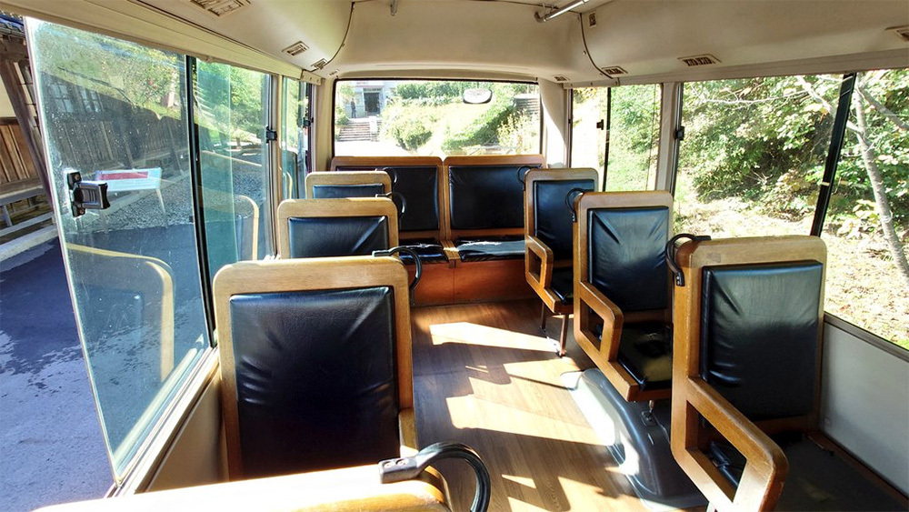 革張り木製の椅子にゆったりと座って出発。見どころ案内のアナウンスと共に、要所要所ではスピードを落としてくれるので広い園内を楽に観光できます。これ、楽しい!