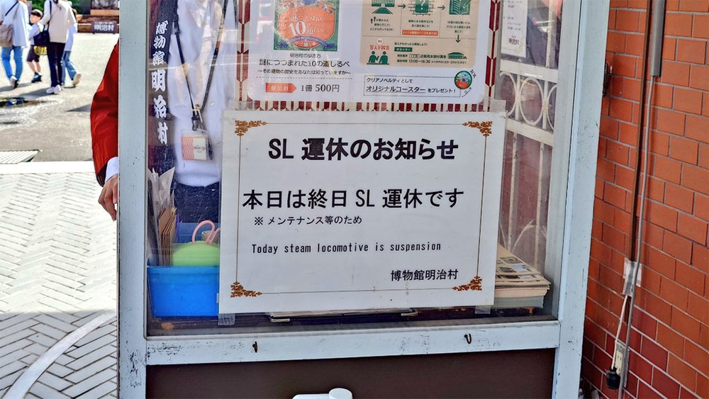 え…SL運休!?なんと、数日前まで運行予定でも、当日運休になることもあるそうです…門の前で運休を知って帰る人も少なくないとか。…わかります。