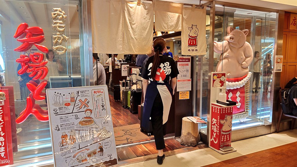 名古屋名物・味噌カツのお店「矢場とん」。10人くらい並んでいても、15分ほどで順番が来るので回転が早いです!