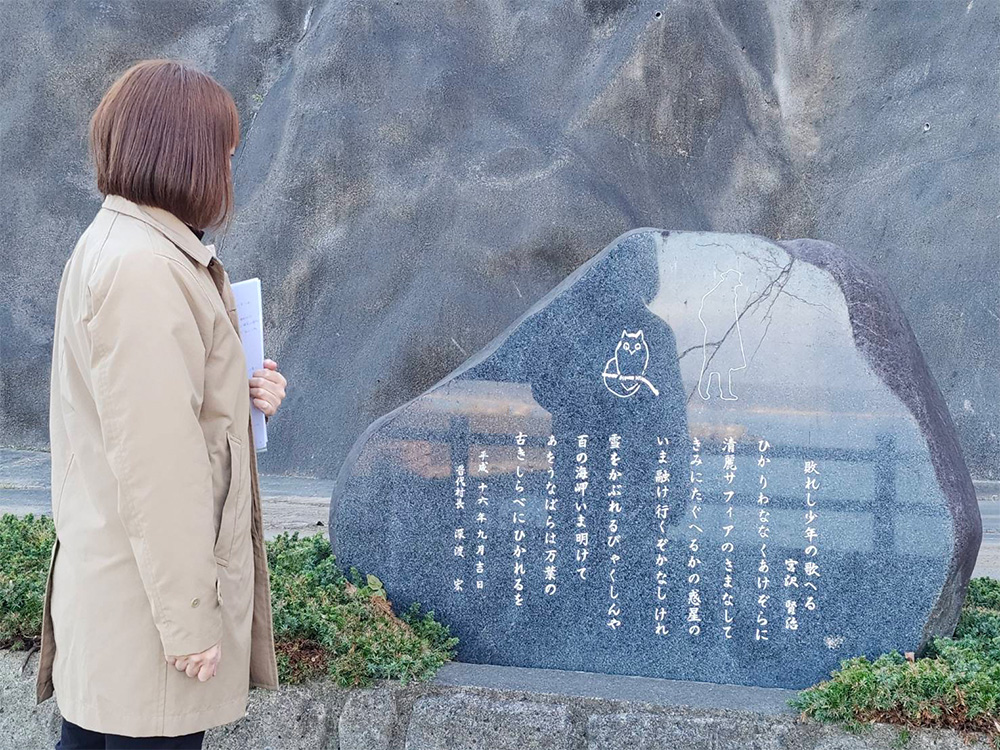 宮沢賢治詩碑「発動機船 一」…と、あれ?浜垣誠司さん!? あれれ…詩碑好きが高じて、遂に詩碑になってしまいましたか??