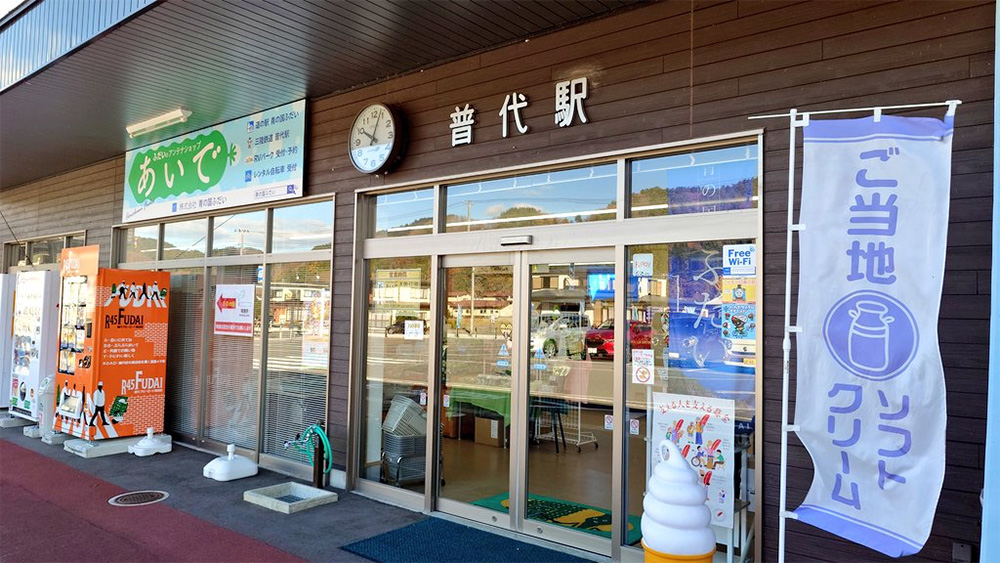次の詩碑は「黒崎展望台」ですが、間の普代駅周辺が観光のオススメポイントなので立ち寄ってみましょう♪普代駅は「道の駅青の国ふだい」と一つの建物になっていてとても便利!列車・バス・車のターミナルとして機能しています。
