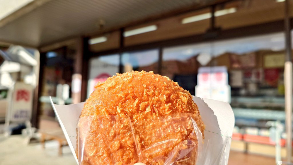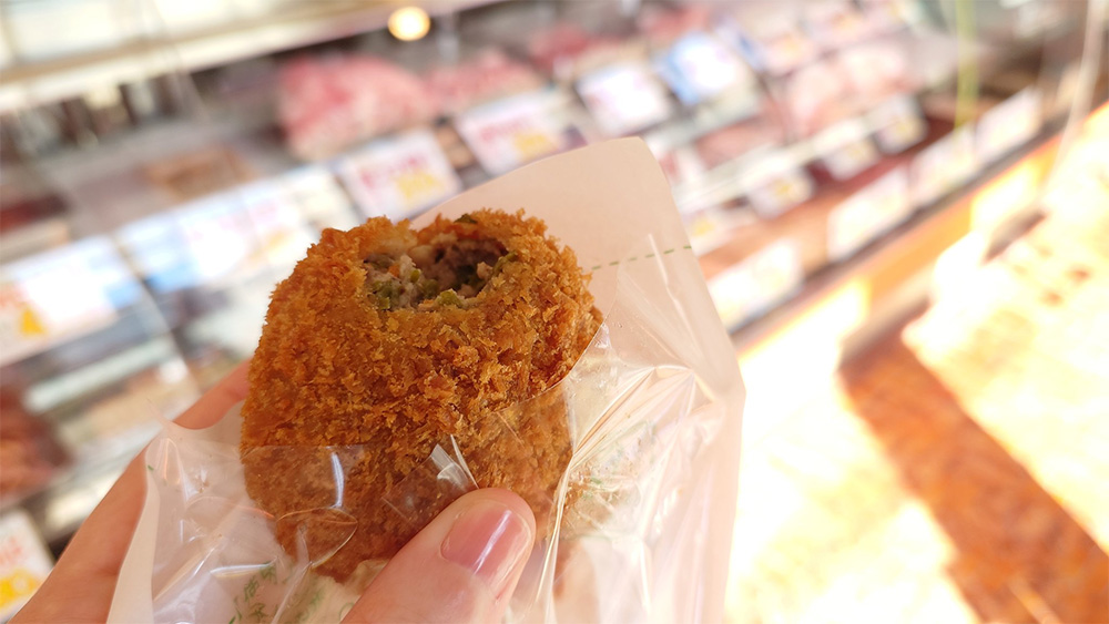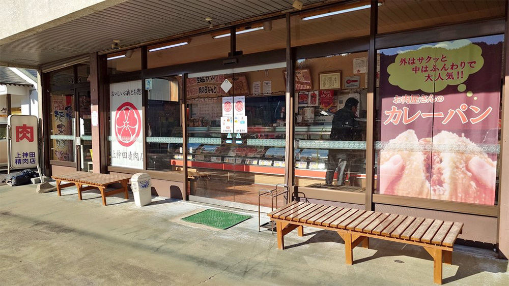 歩いて10分ほどの距離にある普代アビーロード商店街には気になるお店が並んでいます。こちらは「上神田精肉店(かみかんだせいにくてん)」。地元のお肉屋さんに観光客がなぜ?と思われるかもしれませんが…