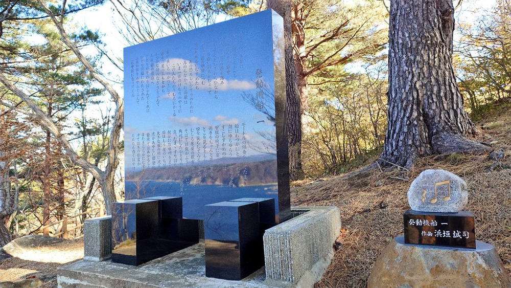 5. 田野畑村・島越駅徒歩2分(島越ふれあい公園内):詩碑「発動機船 第二」