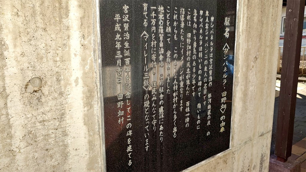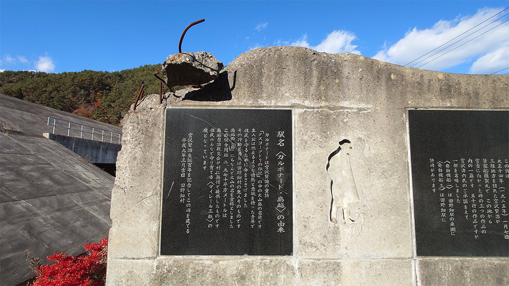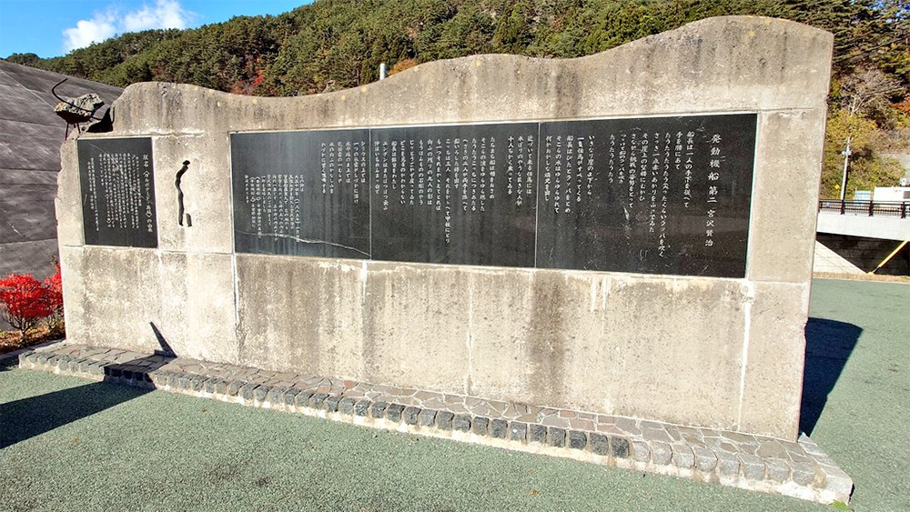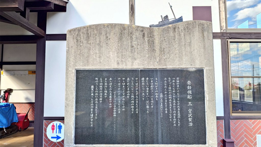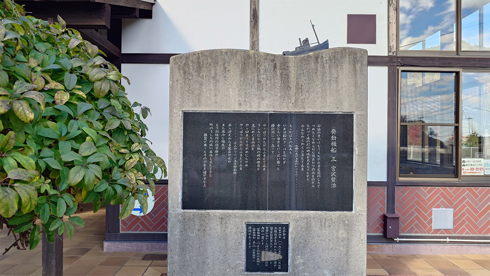 駅のすぐそばに「発動機船 三」の詩碑がありました。上に発動機船が乗っていて可愛い!