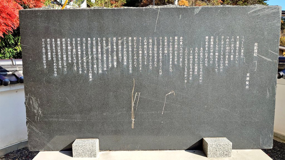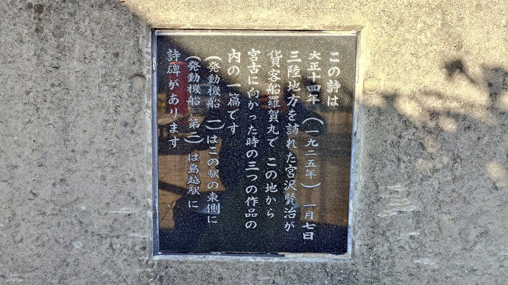 田野畑駅の「発動機船 三」と同じタイミングで建てられた双子の詩碑ですが、こちらの詩碑は東日本大震災で被災して破損。上部についていた発動機船の飾りも流されてしまいました。