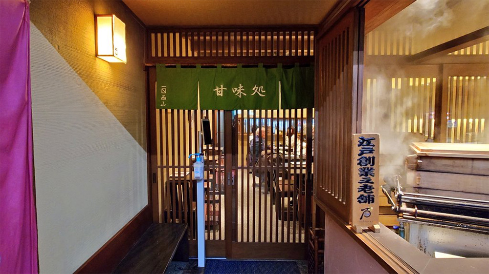 17:46pm 浅草の楽しみ、甘味処です。1階の路面店なのでゴロゴロと一緒に入りやすいお店を選びました。