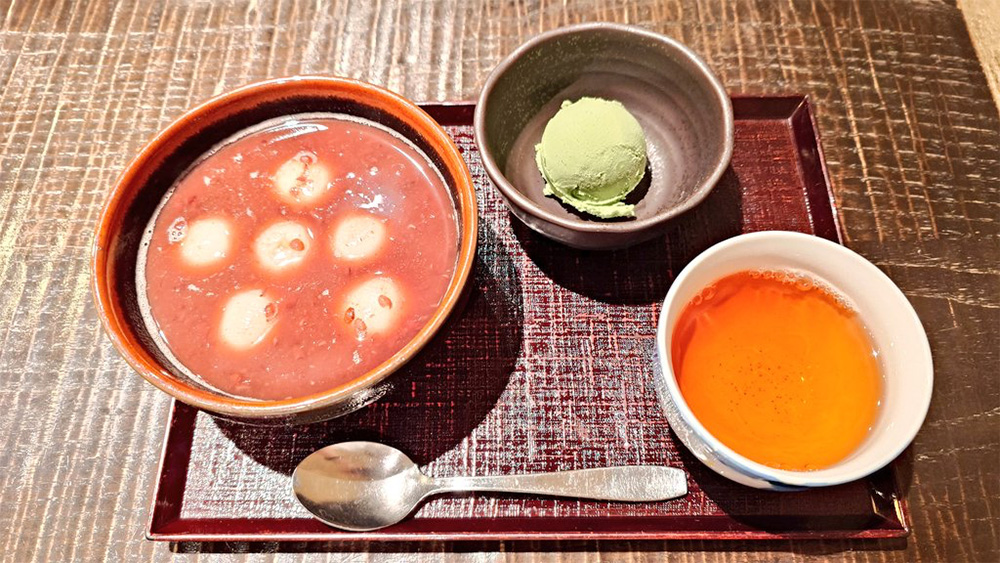 つぶあんが丁寧に選別され、あくを除かれた雑味の無い美味しさ!なめらかでぷにぷにの白玉が6個入っています。冷たいぜんざいの場合はトッピングになる抹茶アイスクリーム別添え。このアイス特別で、自家製なんです!シンプルな素材で作られていて、美味しいのです。今日のイベントのあれこれを振り返りつつ、甘さに癒され、上質な時間が過ごせました♪
