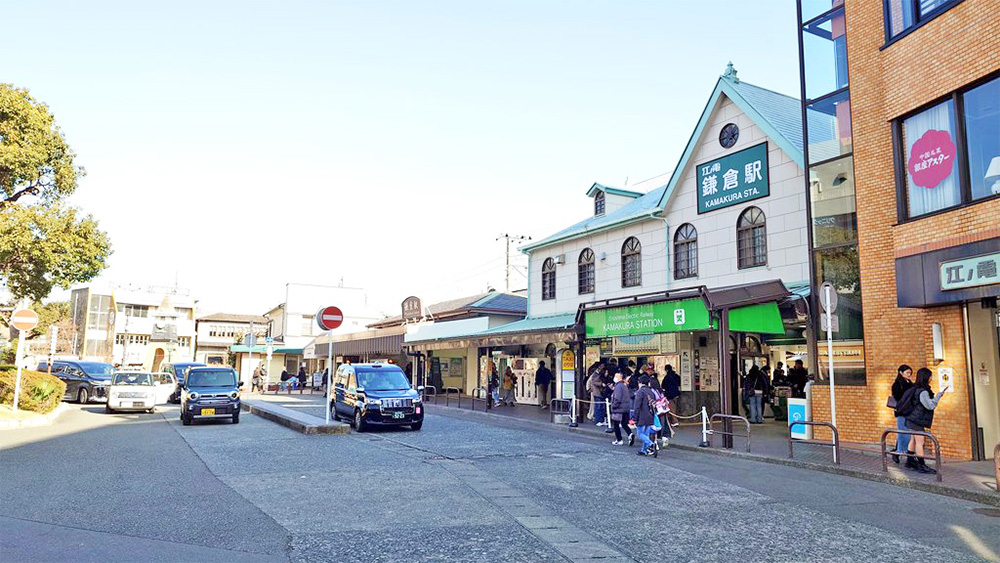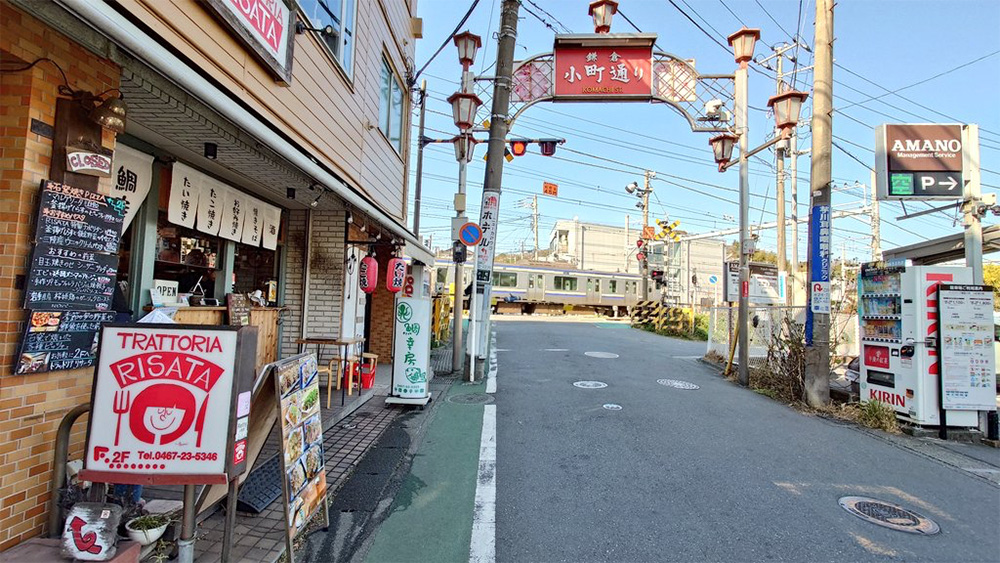 海に向かうのではなく、駅を越えて…この方向は小町通りに向かっていますね。