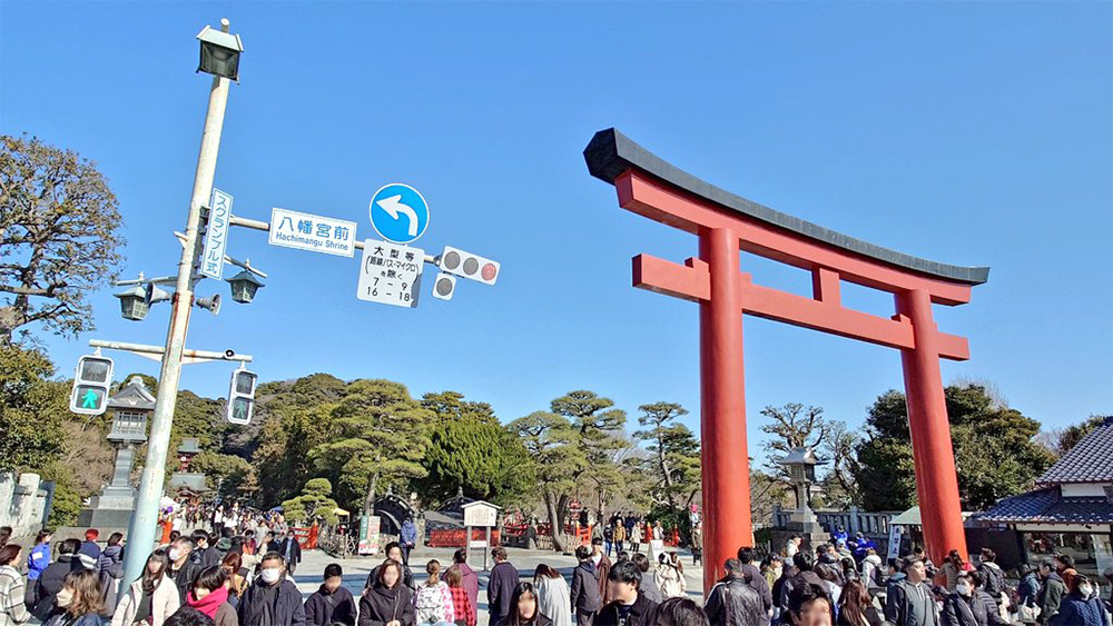 鶴岡八幡宮前交差点です……あ、神社入らないで若宮大路へ。